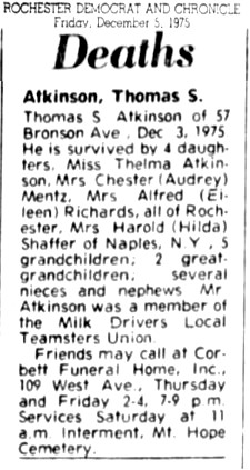 New York, USA and was buried in the Mount Hope Cemetery in Rochester