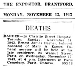 the Chrisie Street Hospital in Toronto, Ontario and was buried in the Paris,