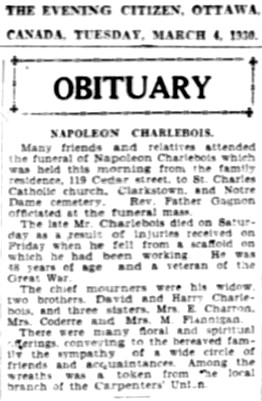 Charlebois, wife, 34 Beechwood, Ave., Eastview, Ontario