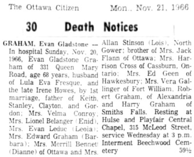buried in the Beechwood Cemetery in Ottawa, Ontario