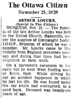 Saskatchewan and was buried in the Spruce Haven Cemetery, Brinston, Ontario