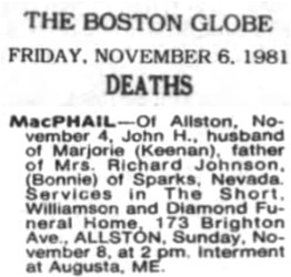 John Hector McPhail died in Allston,