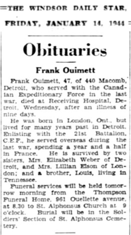 Michigan, USA and was buried in the St. Alphonsus Cemetery in Windsor,