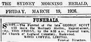 buried in the Church of England Cemetery in Roockwood, Sydney.
