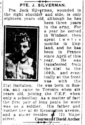 and Victory Medals were sent to him at 109 Brunswick Ave., Toronto, Ontario